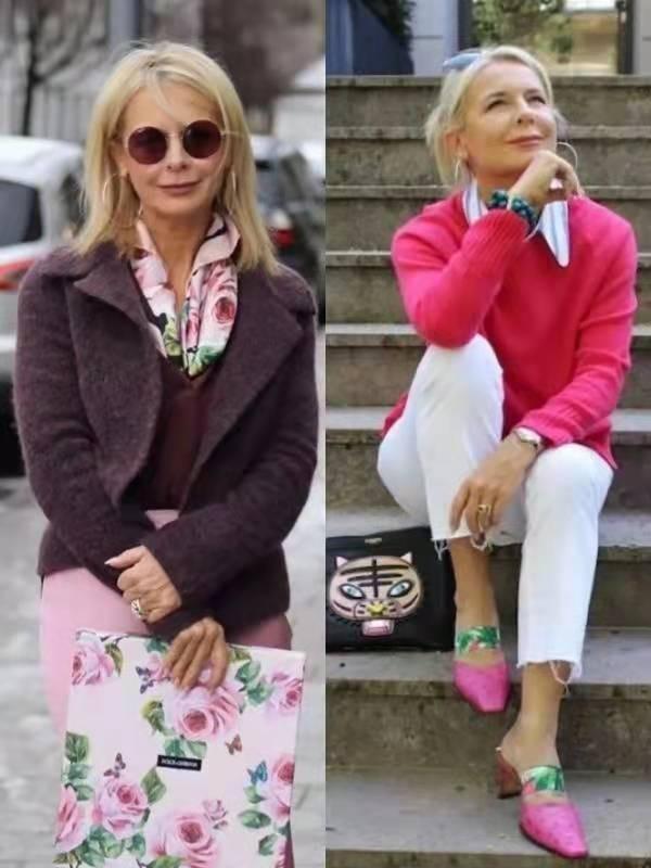 气质女东说念主的穿衣颜色,大多战胜“少而精”的原则,全身颜色不特出三种,以基础色为主,点缀极少援救色,就能打造出和解又耐看的穿搭。比如玫红色搭配白色,基础色和流行色彼此呼应起来,更提气色。
