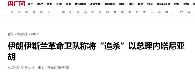 信息起原:伊朗伊斯兰创新卫队称将“追杀”以总理内塔尼亚胡 央广网 2026-03-15 16:21:34起原:央视新闻客户端