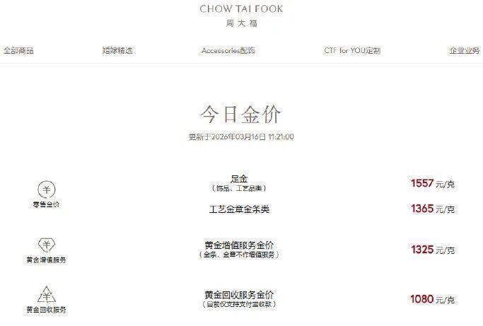 周大福1557元,老凤祥1542元,老庙黄金1560元。 这些品牌金饰的价钱,比基础金价足足高了400多块钱。