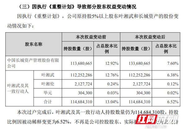 权利变动后,公司原控股股东叶湘武额外一致行为东谈主握股比例因被迫稀释变更为6.52%,不再是公司控股股东、执行戒指东谈主,仍为公司握股5%以上股东。
