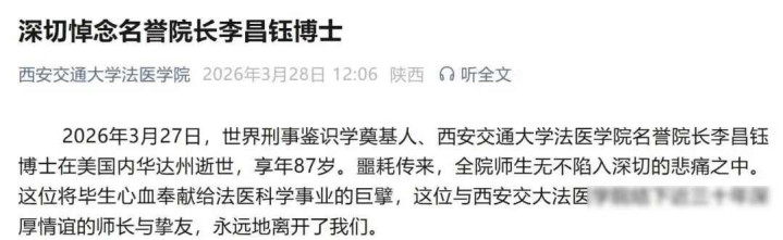 复旦大学、上海政法学院等高校齐发了著述怀念他,昨年六月李昌钰在复旦大学讲座时对年青东说念主说,自媒体时期假音尘多,作念刑侦的更得守住我方的底线,这话刻下又被人人翻出来,成了他给后辈最竟然的一句话。