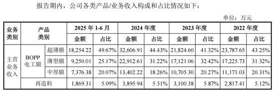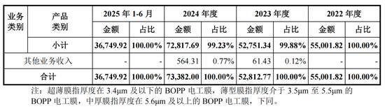 2022年-2024年以及2025年上半年(简称:论说期),嘉德利分别已毕营业收入5.50亿元、5.28亿元、7.34亿元、3.67亿元,其中BOPP电工膜的销售收入占比达到94.88%、94.12%、94.65%、94.91%。与此同期,嘉德利净利润存在显豁波动,同期分别为1.92亿元、1.41亿元、2.38亿元、1.25亿元。