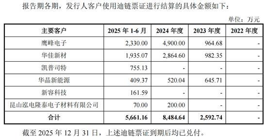 4、论说期各期主要客户使用迪链票证进行结算的具体金额及到期后的兑付情况,公司收到迪链票证后的管帐处理,谋划管帐处理是否允洽《企业管帐准则》规矩。