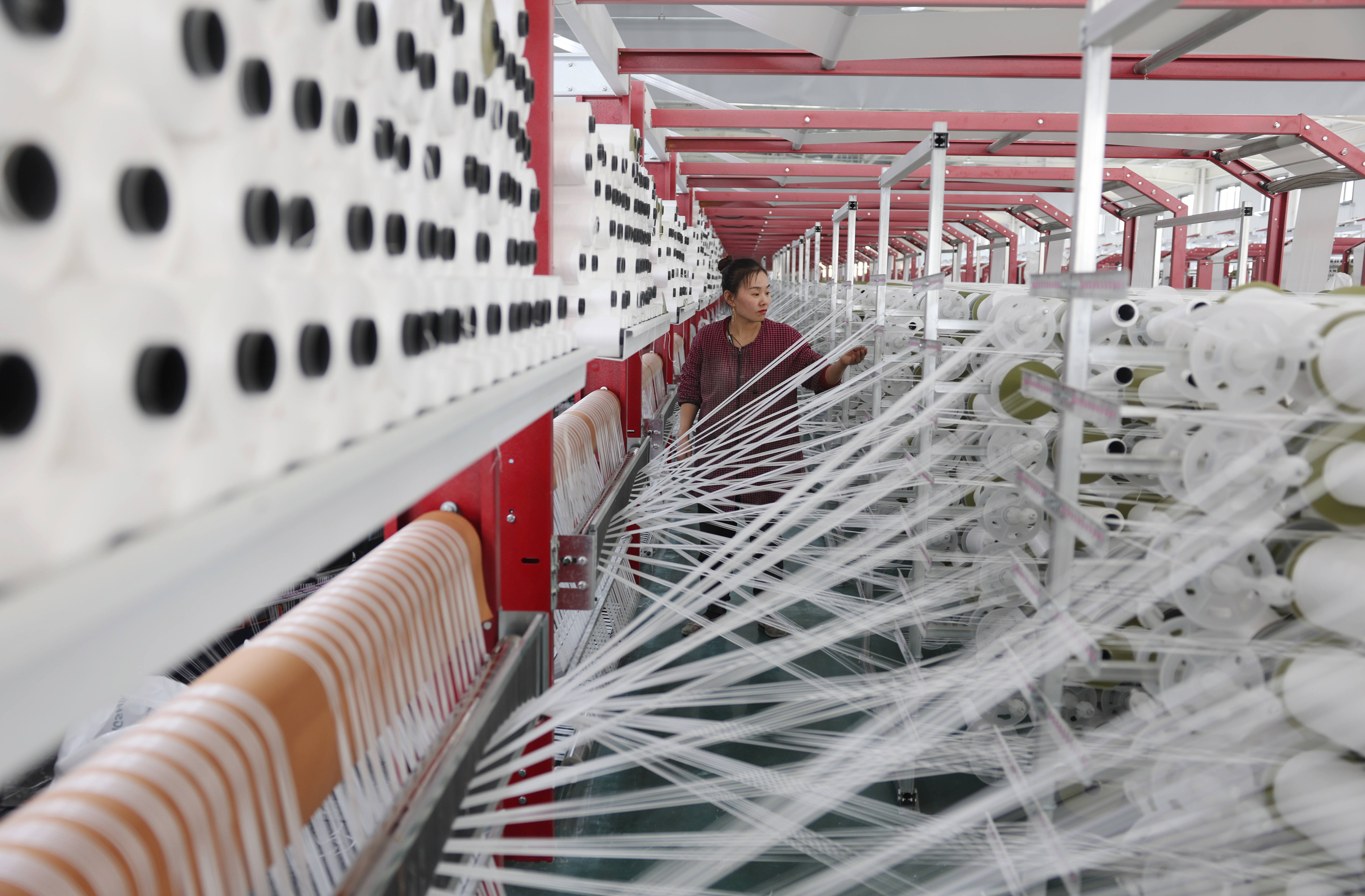 3月16日,在山东省临沂市沂南县一家塑编企业车间,开云体育(中国)官方网站工东说念主在坐蓐线上加工塑编居品。