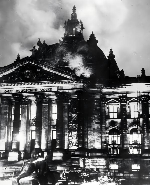 20世纪30年代的德国魏玛政权同期面对着左翼势力(共产党)和右翼势力(纳粹党)的兴起,1933年,纳粹党为栽赃德国共产党而炮制了“国会放火案”,并在之后一步步瓦解了魏玛共和国的民主轨制