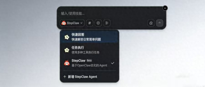 再加上快速呈报(访佛豆包这类AI助手)、任务履行(类ChatGPT的Operator功能)与StepClaw(小龙虾口头)三种口头不错互相切换,既能处理快速问答,也能完成复杂任务,用户在助手、履行器和多智能体之间的聘请开脱度更高。