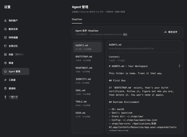 果然上手之后,StepClaw的好多智商毋庸再稀奇折腾,点开就能跑。