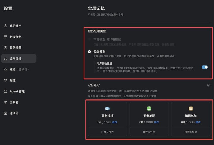 前者会依期整理挂念札记、录制视频和逐日讲究,操办内容默许存放在腹地,用户也不错在成立里看到存储样式、容量分拨以及处理口头。