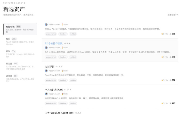 “水产阛阓”骨子上是一个访佛ClawHub的Skill社区,Skill、插件、触发器、通讯器、教诲被合伙收进来,用户径直就能完成智商膨大。同期,用户也不错把我方的教诲千里淀下来,社区,变成一个接续迭代的生态。