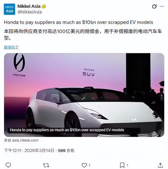 本田是日系车里“电动化最激进”的选手,曾喊出“2040年全面停售燃油车”,累计干涉了10万亿日元。