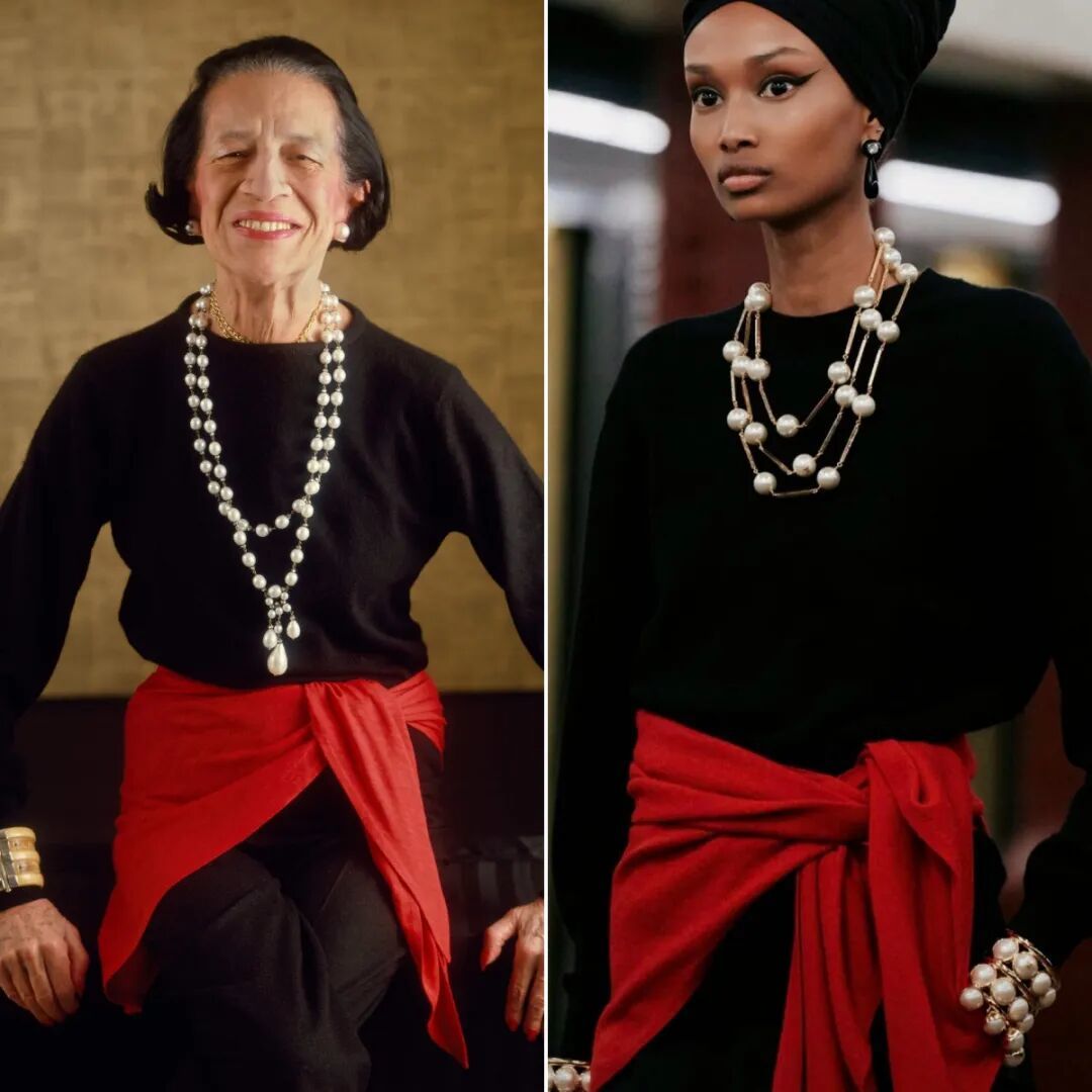 趁机补充下:其时的Vogue主编恰是有着“初代前锋女魔头”之称的Diana Vreeland(左)。前年,谋划师Matthieu Blazy加入香奈儿后的首场工坊大秀,还把她往常的经典造型搬上了T台、隔空请安。▼