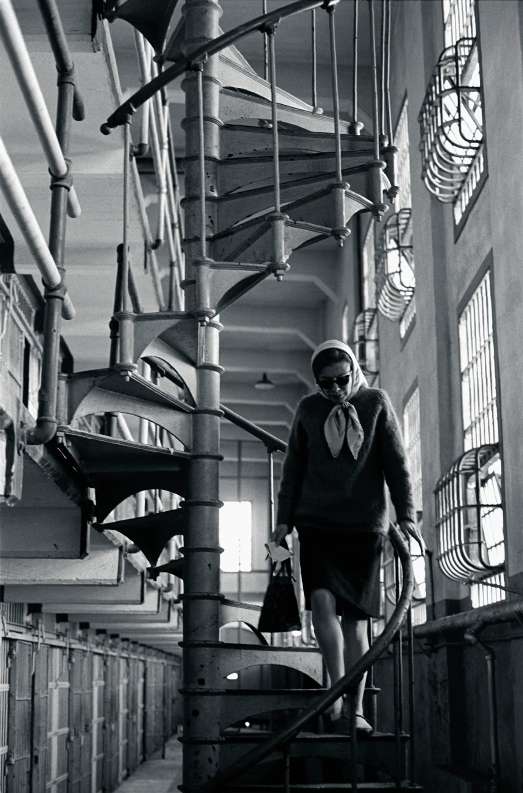 1967年她去阿尔卡特拉斯监狱采访,穿的亦然铅笔裙+平底鞋,这段阅历自后被她写进了散文《摇滚年代》里。▼