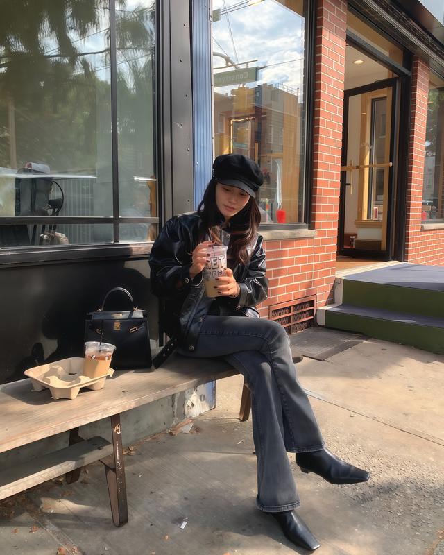 ✓ 深蓝牛仔更酷飒,加顶帽子提高造型感