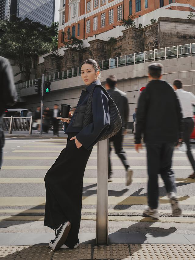 春天穿阔腿裤面料选错等于徒劳,呢料炽热纯棉起皱都不太合适,垂感好的面料才是正确谜底,醋酸、冰丝或者有厚度的西装面料都行,穿上之后裤管天然下垂不贴腿,配皮衣穿出来干净利落。