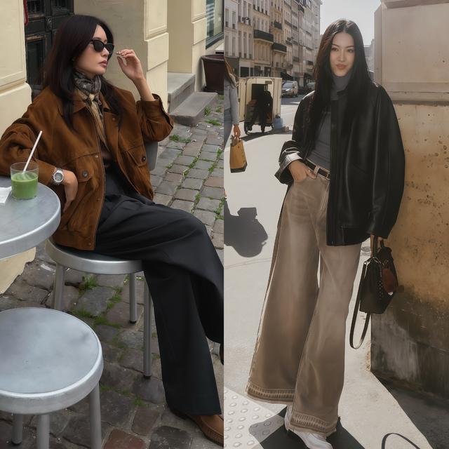 <三> 4组春天的“皮衣+阔腿裤”配色公式照着穿,外出不费脑