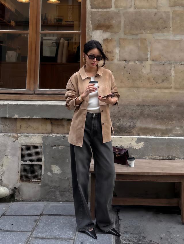 好多东谈主以为皮衣只可秋冬穿,其实春天才是它最出彩的季节,气温合适,不需要叠穿太多,内部一件T恤或忠实衫就够,外面披件皮衣、底下配条阔腿裤,干脆利落一整天都安祥。