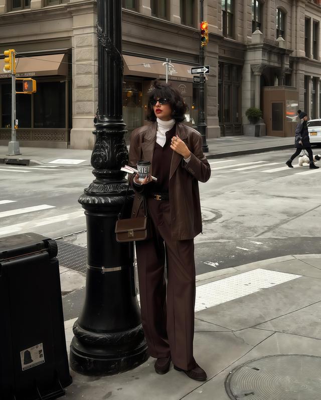 ✓ 全棕色系搭配,春天穿自带暖意