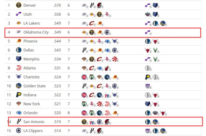 两东说念主皆未达到65场的评比司法,两队剩余赛程难度雷霆第4,马刺第14。