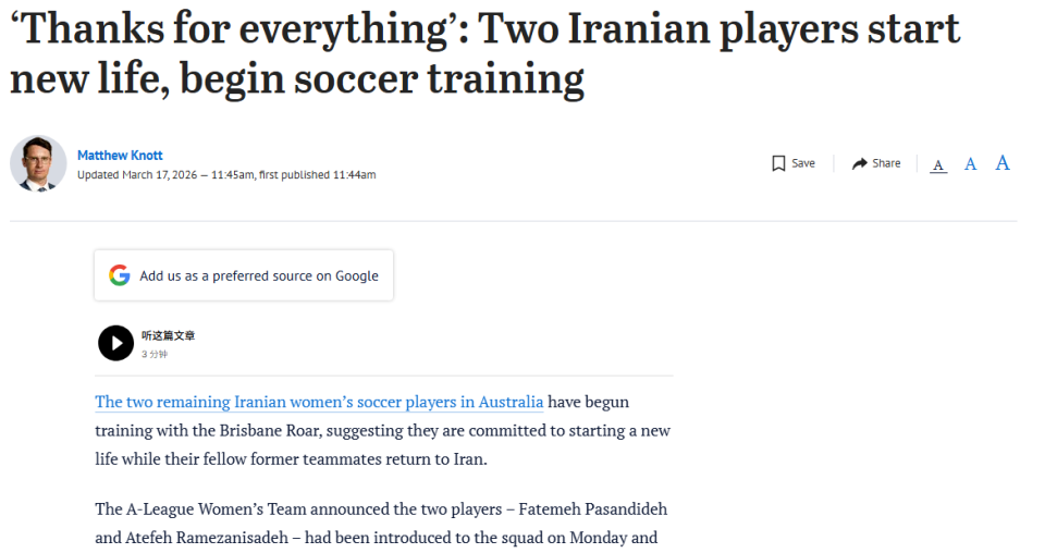 据多家媒体报说念称,之前留在澳大利亚的7名伊朗女足成员,也曾有5东说念主撤退了在澳大利亚的坦护央求,当今独一2东说念主还留在了澳大利亚。据《悉尼前驱晨报》报说念称,留住的2东说念主也曾奴才布里斯班狮吼女足一王人磨练。