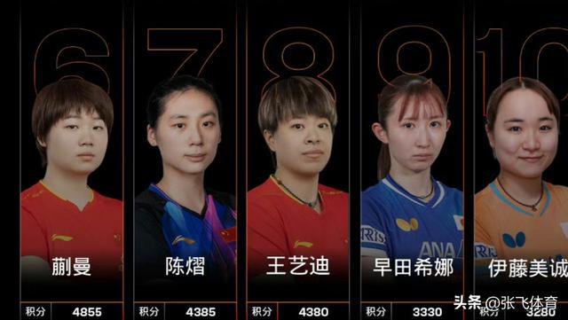 王艺迪(4380分)第八,早田希娜(3330分)第九,伊藤好意思诚(3280分)第十。