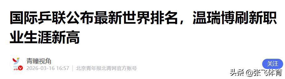 青瞳视角——海外乒联公布最新天下排名,温瑞博刷新工作生计新高