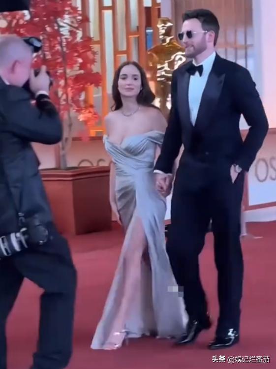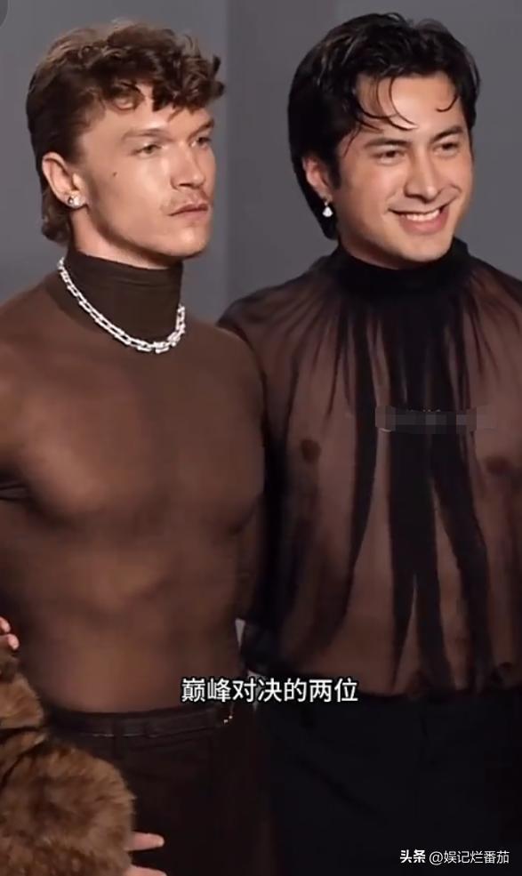 女生深V、招引力满满的裙子,奏凯让男生在红毯上亲了她一口。