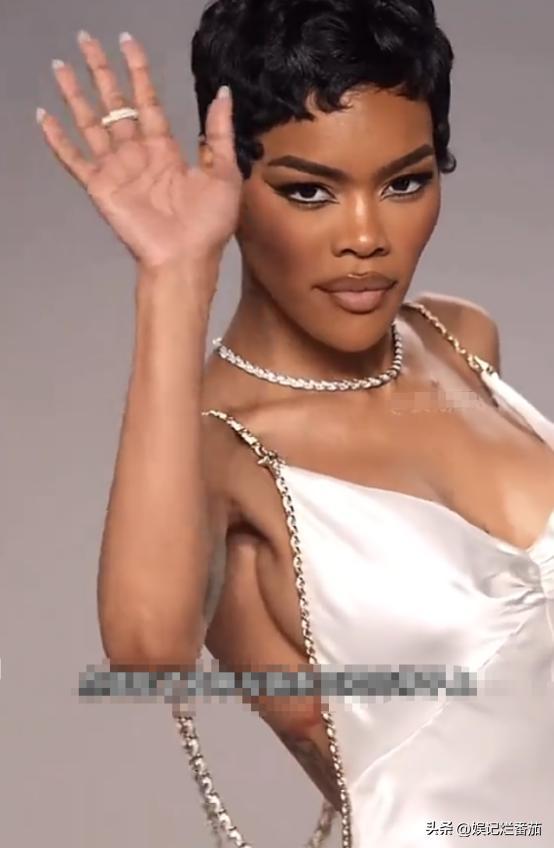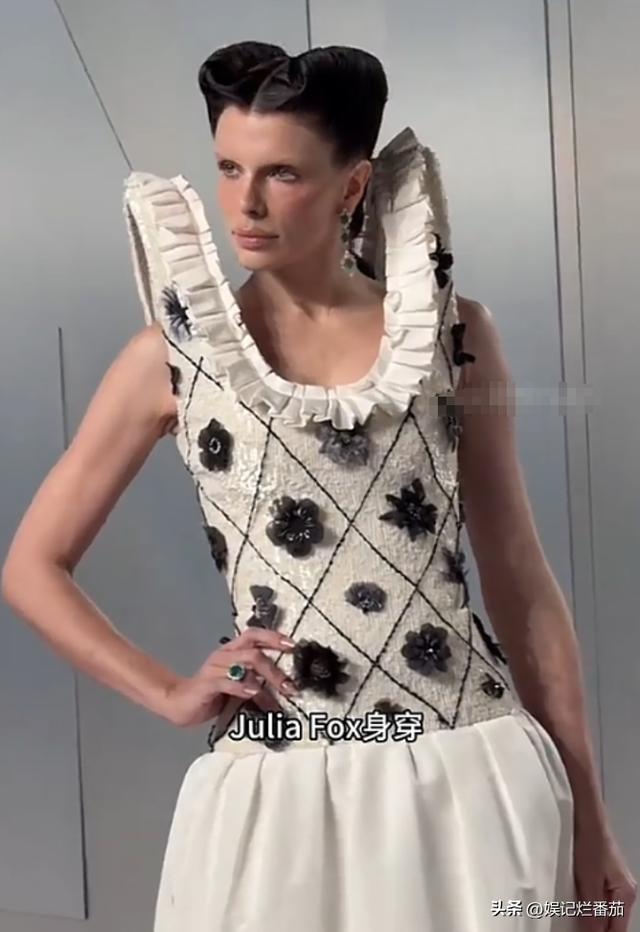 上半身除了雪纺披肩,胸前只挂了金属作念的花,开云体育隔着屏幕王人嗅觉很扎。