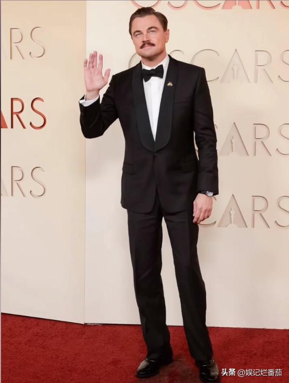 再看小李子的情状,孤苦黑的西装,烘托的他瘦了好多、大长腿也来了。