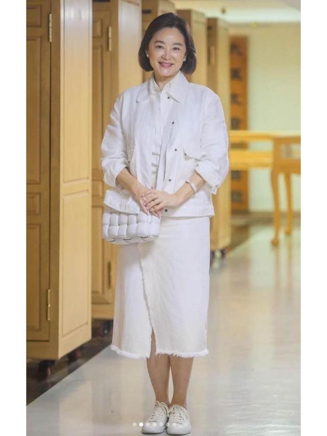林青霞的穿搭从来不是靠大牌堆砌,而是用节约版型和质感细节,把闇练女性的优雅刻进执行里,这孤苦白色系的套装搭配,则把浮松感和高等感均衡得恰到克己。白色翻领短外衣叠搭同色系衬衫,挺括版型粗略修饰肩线,七分袖计算利落不迟滞,下装搭配白色的半身裙,裙长落在小腿中部,骄贵纤细脚踝,显瘦还增高。