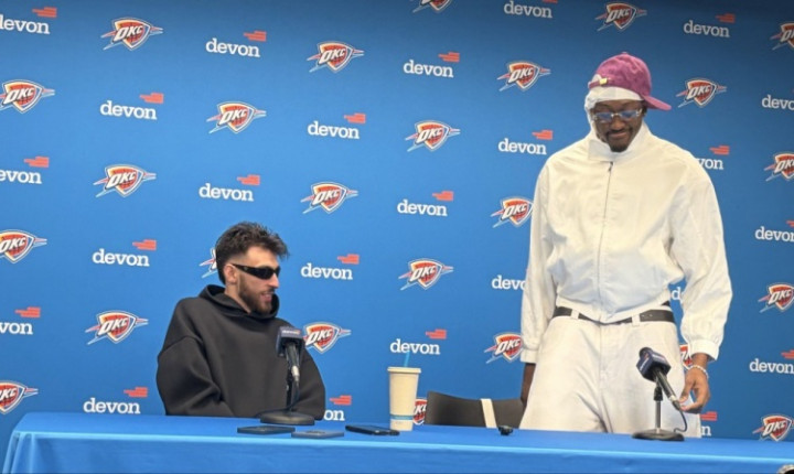 赛后,雷霆球员杰伦·威廉姆斯和霍姆格伦出席了新闻发布会。两东谈主着安装色皆备相背,杰伦威簸弄谈:“全黑和全白,就像阴和阳。”